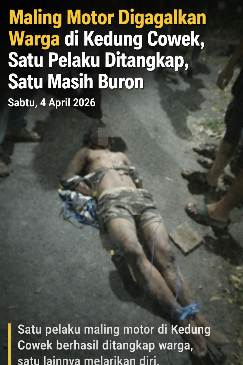 Maling Motor Digagalkan Warga di Kedung Cowek, Satu Pelaku Ditangkap, Satu Masih Buron